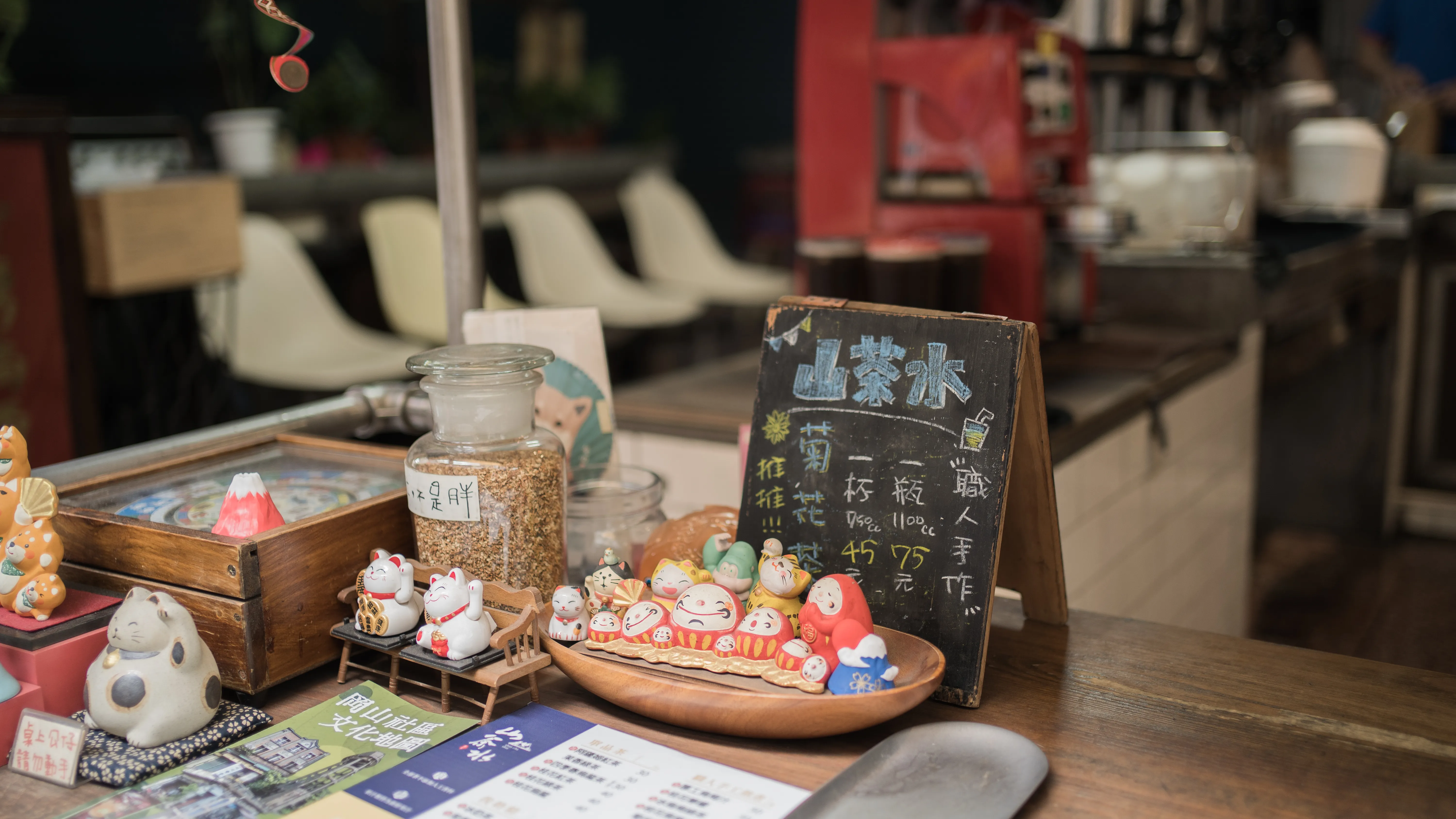 茶攤本身不顯眼:在平安市場該開元街的一側巷弄中的市場攤位,擺些復古椅子,牆上掛著菜單。老闆精心設計的市場打卡點,雖沒有華麗簇新的顔色,卻因為那些人情味的語句與飄浮茶香,反而成了心裡的藏風所在。