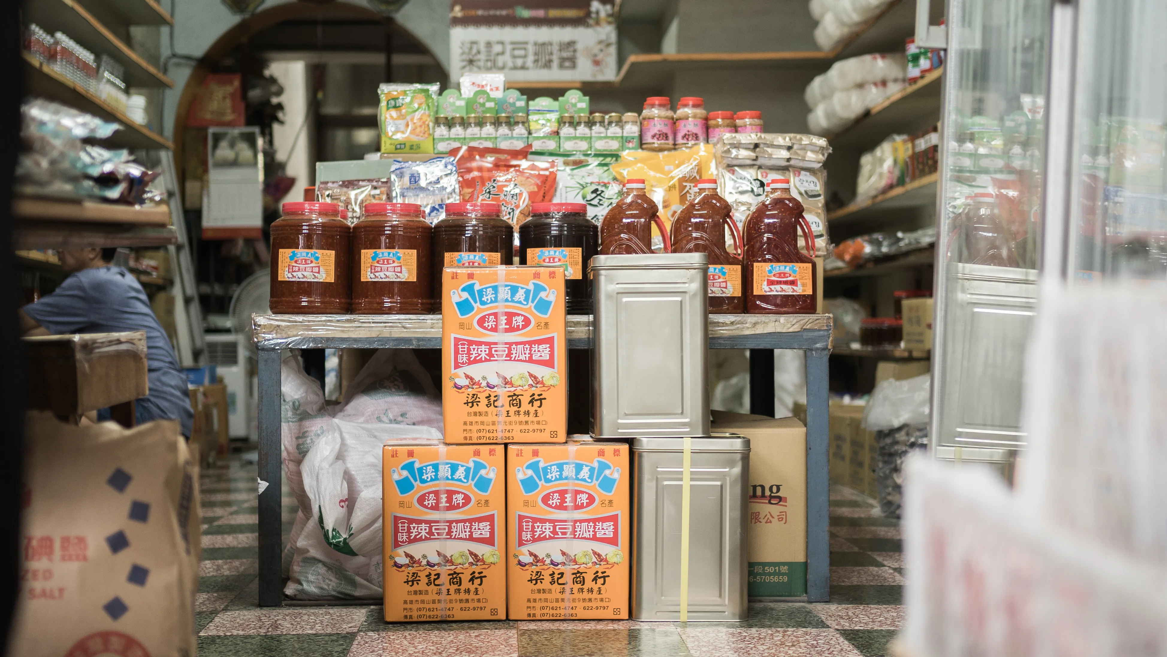推開店門,視線抵達層架上排列的各式醬料瓶、乾貨、香油與豆瓣醬。老闆忙碌卻不忘與顧客閒話家常,動作熟練、笑靨盈盈,店內熟客絡繹不絕,氣氛既熱絡又親切。